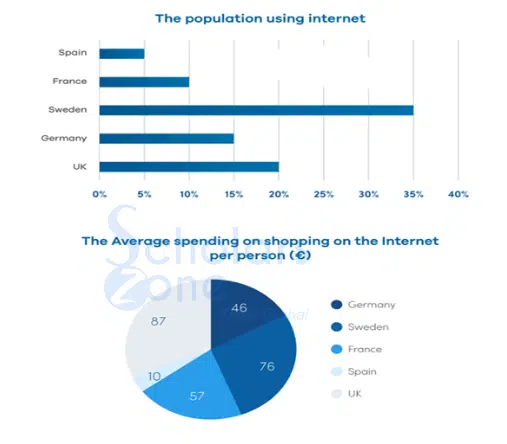08. The charts show the info about the use of Internet in five countries in Europe in 2000.