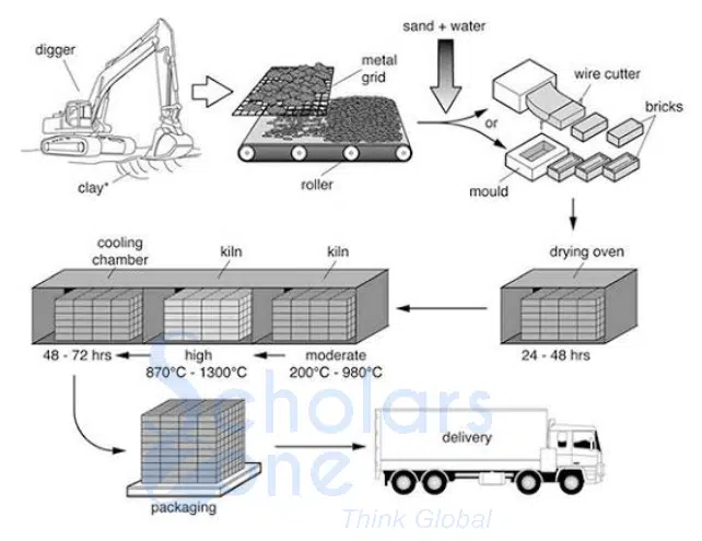 16. The diagram illustrates the process that is used to manufacture bricks for the building industry.